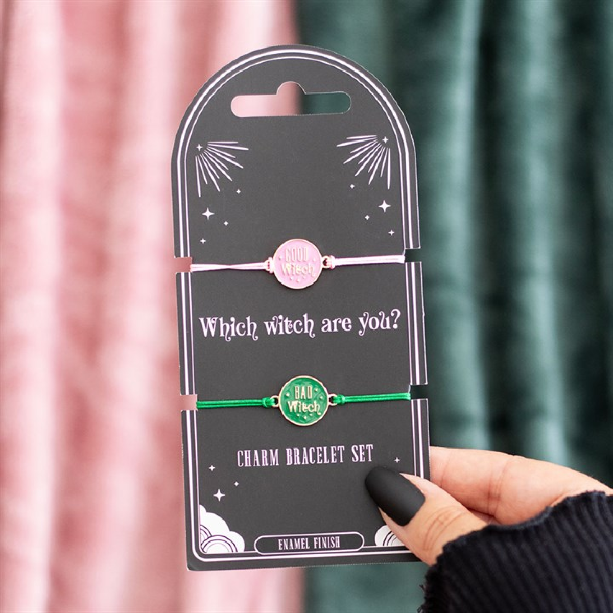 This set of two adjustable string bracelets features ‘Good Witch’ and ‘Bad Witch’ charms to suit your mood or share...