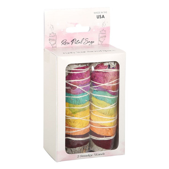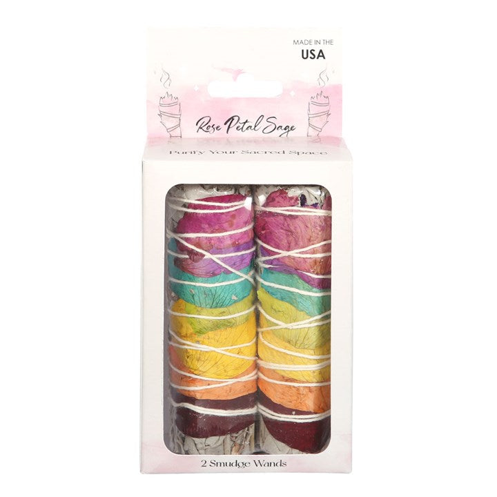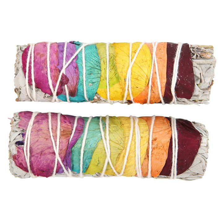 This set includes 2 bundles of dried white sage, known as smudge sticks or wands, accented by a rainbow of...
