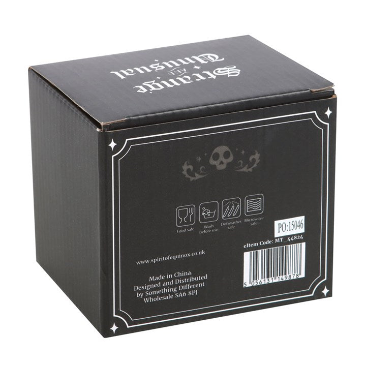 Summon a smile with every sip with this delightfully peculiar ceramic mug. Features 'Strange and Unusual' text written in gothic...