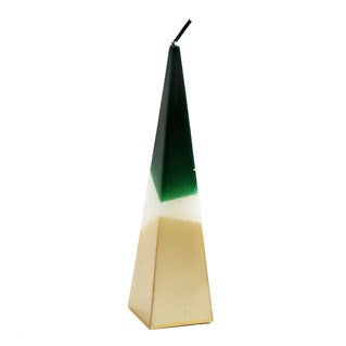 A pyramid shaped candle in a modern green and gold dipped design. Approximately 20cm. Read more